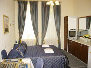 Small modern 1-room studio remodeled like a Western luxury hotel room. Ideal for business and for leisure travelers. It has an air-conditioner, high-speed Internet connection (on request), king-size bed, TV set with international satellite channels, modern fully equipped kitchen-studio with table with 3 arm-chairs, bathroom with a shower cubicle.